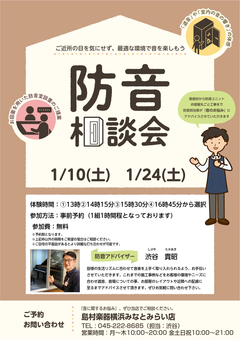 詳しくは、当店の防音担当の渋谷(しぶや)までお気軽にお問合せ下さい。お客様の状況をお伺いした上で、最善の方法をご案内させて頂きます。