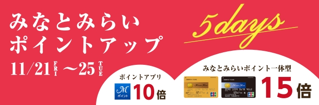 【キャンペーン情報】11/21(金)~11/25(火) みなとみらいポイントアップキャンペーン開催!