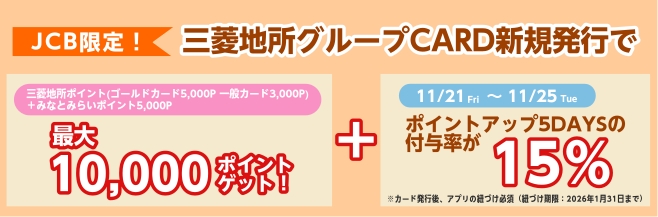 キャンペーン特設ページから 三菱地所グループCARD(みなとみらいポイント一体型)〈JCBブランド〉 に新規ご入会いただくと、