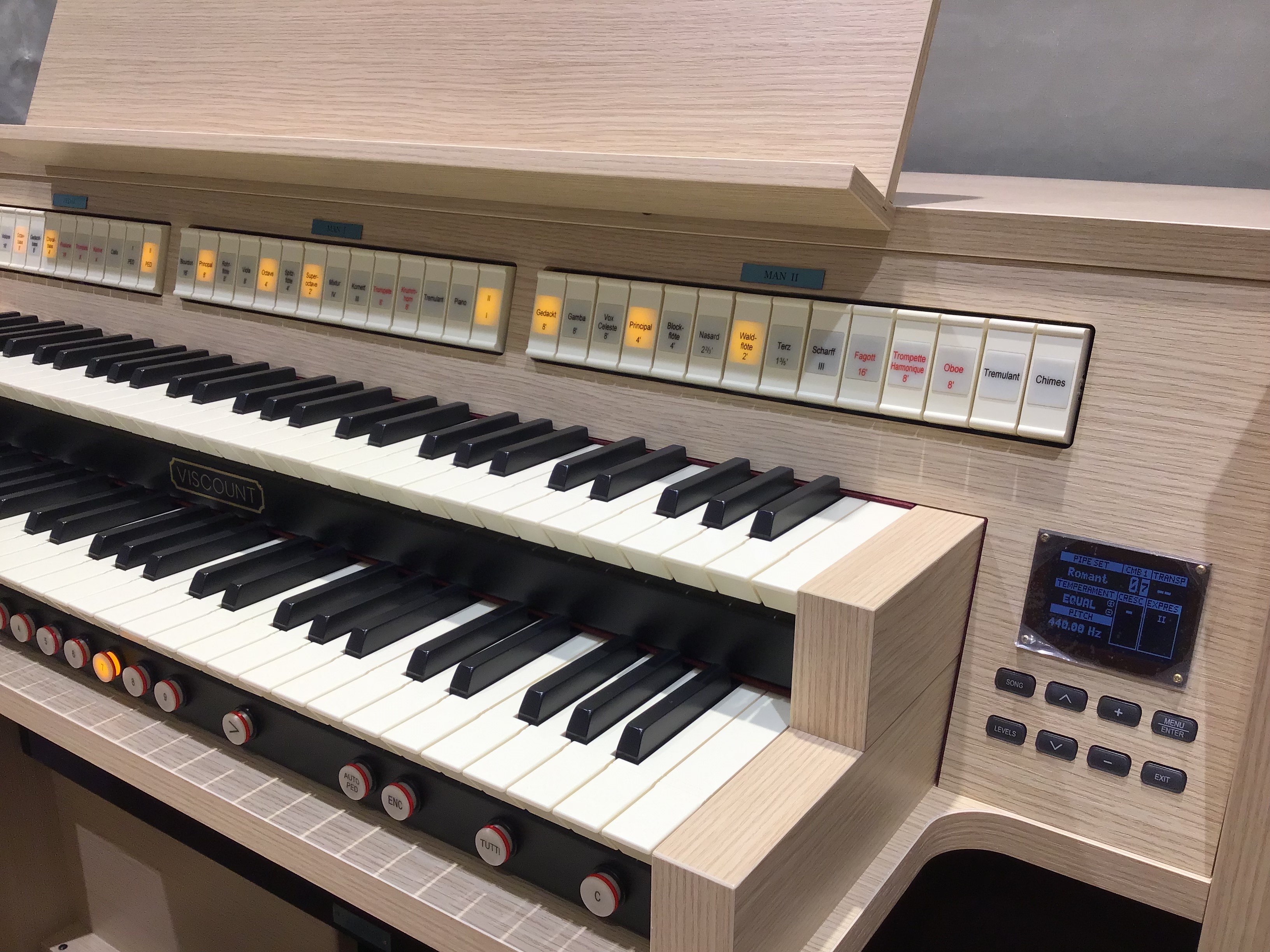 バイカウントは特に鍵盤が好評。象牙風の滑りにくい仕上げに、しっかりと重みのある「トラッカータッチ」が、本物の感触を再現。教会オルガンの練習用にもお勧めです。