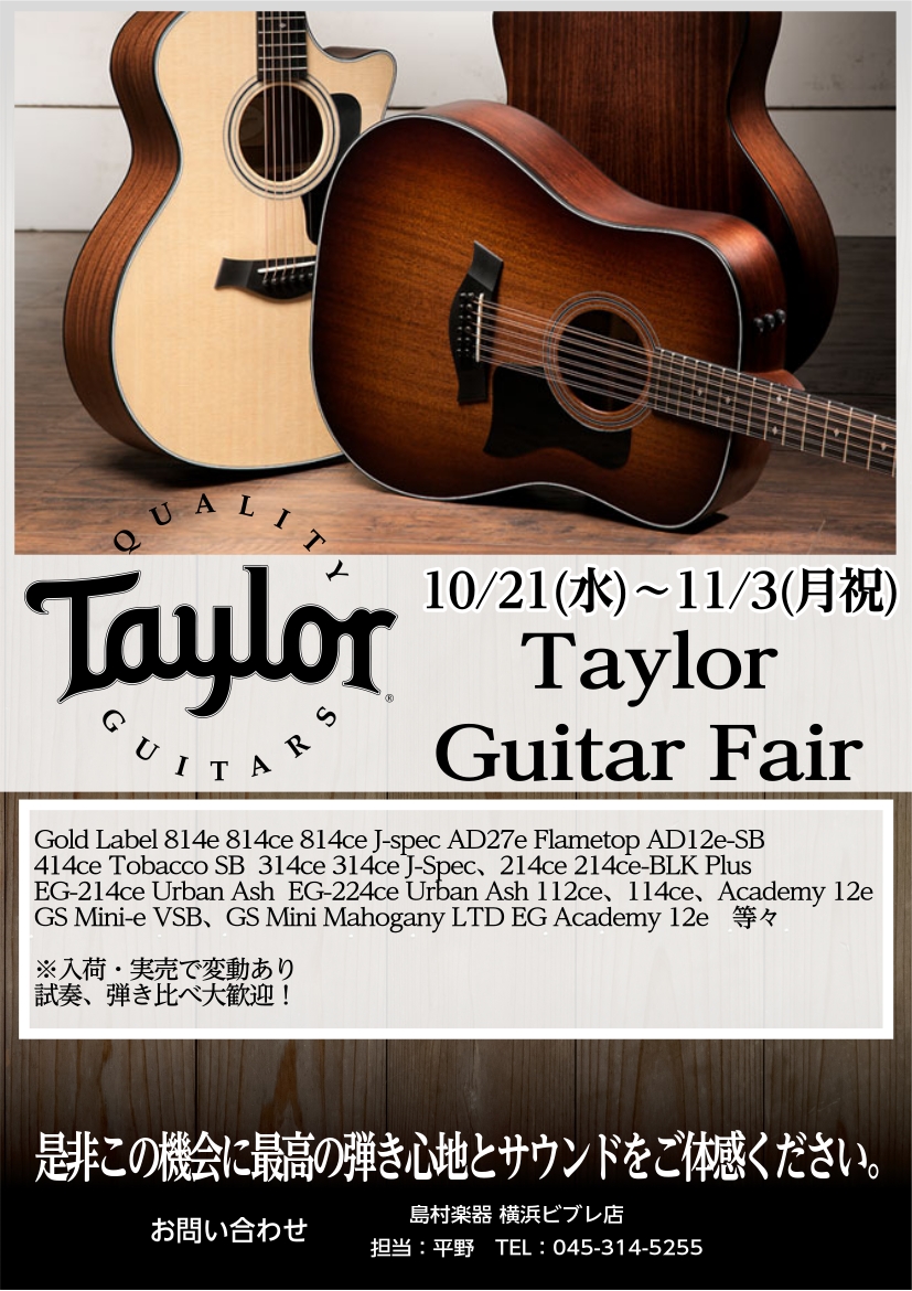 ![皆さま、いかがお過ごしでしょうか? この度、当店にてTaylor(テイラー)アコースティックギターフェアを開催いたします! Taylor Guitarとは… Taylorは1974年にアメリカ合衆国、カリフォルニア州にて創設されたギターメーカーです。 2014年には全米ギター売上本数1位を記録し、昨 […]](https://www.shimamura.co.jp/shop/yokohama/wp-content/uploads/sites/38/2025/10/20251022-584333747130990662.jpg)