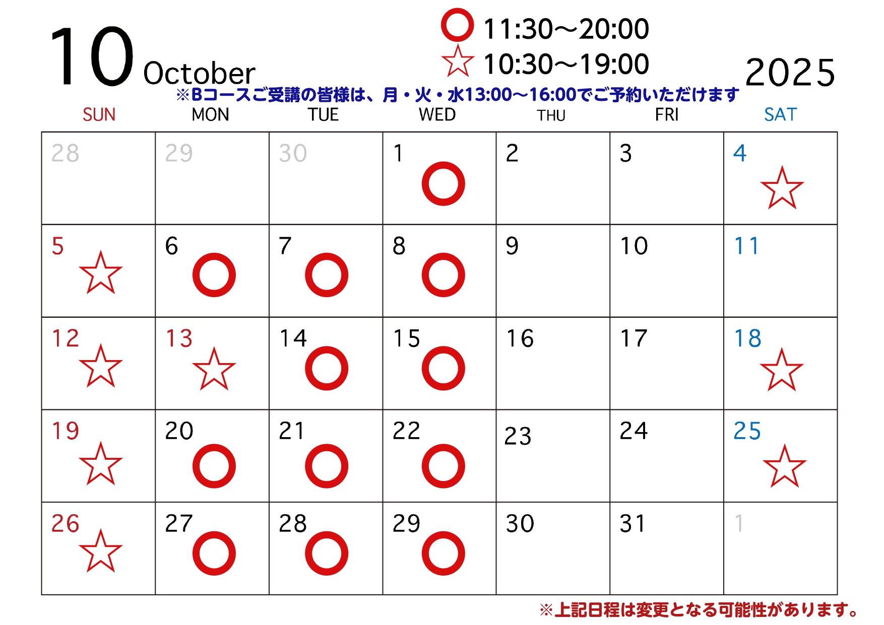 10月カレンダー