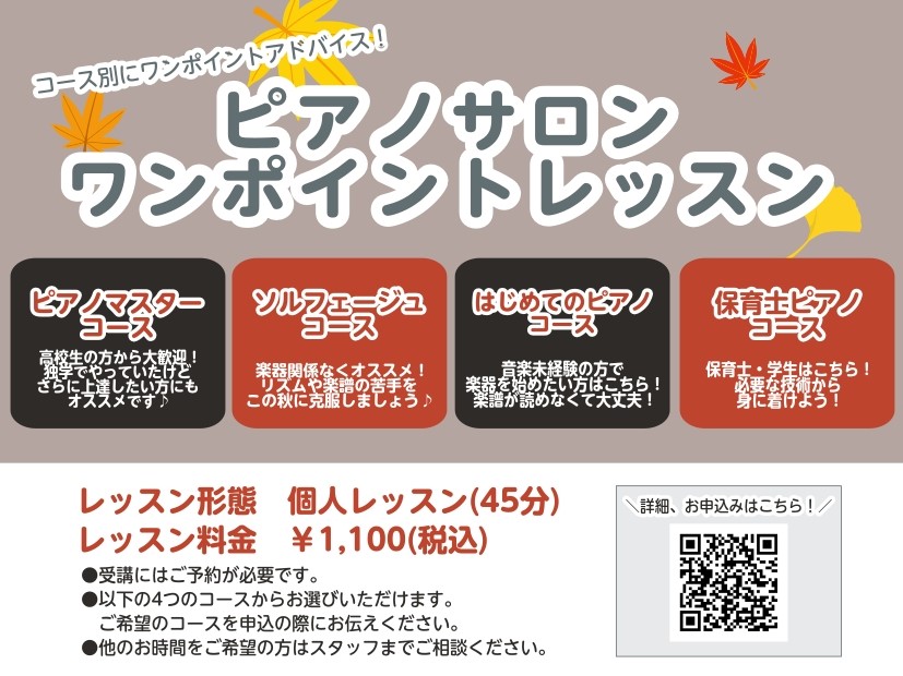 ピアノマスターコース・ソルフェージュコース・はじめてのピアノコース・保育士ピアノコース