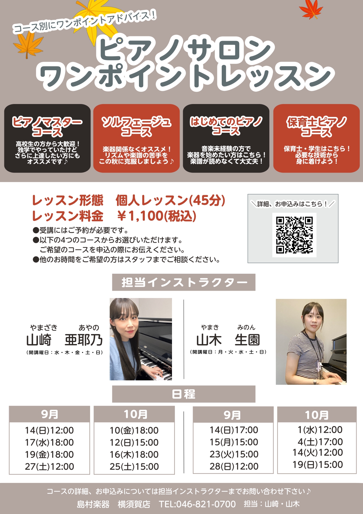 ピアノインストラクター山崎・山木の共同企画でピアノサロンワンポイントレッスンを開催します!