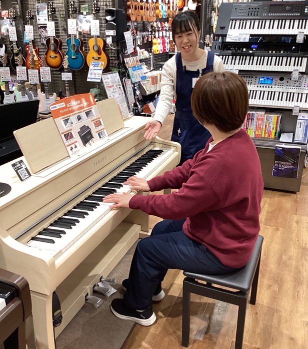 当店には電子ピアノのご案内が可能なスタッフが多数おります。ピアノ担当美濃やピアノインストラクター平林、小林以外にも勤務歴の長いスタッフやピアノ経験・ピアノ講師経験のあるスタッフもおりますので、電子ピアノ選びでお困りのお客様がいらっしゃいましたら、お気軽にお問い合わせください♪皆様のご来店をスタッフ一同お待ちしております。